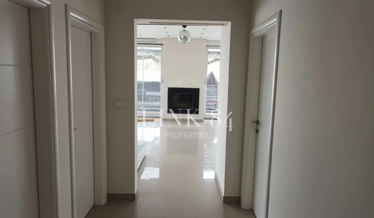 Aluminijumska stolarija sa clima gard staklima punjenim argonom. Granitna keramina sa podnim grejanjem na donjem nivou. Kamin na drva sa ventilacionim tunelima za grejanje gornjeg nivoa. Smart house resenja za motorne roletne. Tehnicka soba sa policama. Ugradni Americki plakari u koje se ulazi.